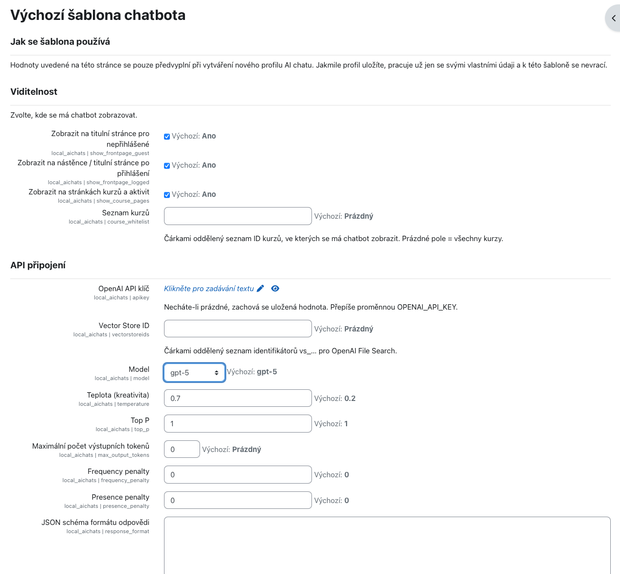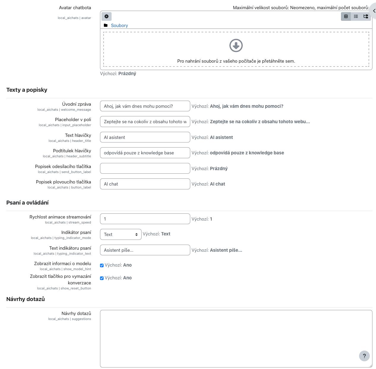 Plugin využívá data z vašich kurzů a aktivit, takže odpovídá relevantně – nehalucinuje.